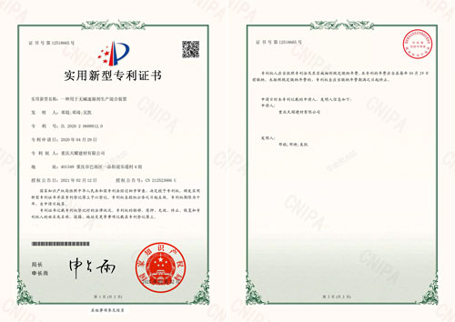 重慶天耀建材有限公司榮獲多項(xiàng)專(zhuān)利證明